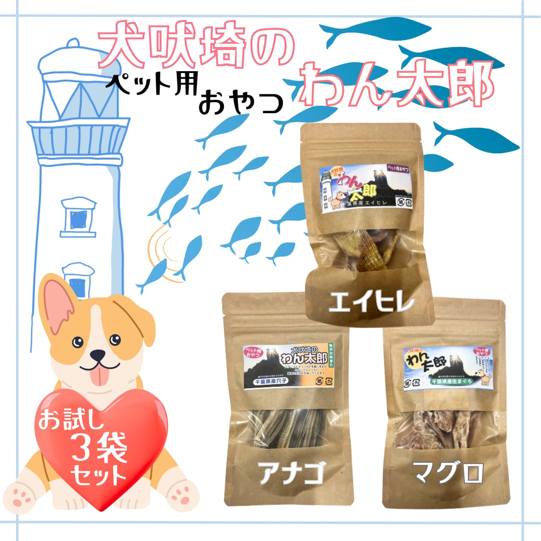 千葉県産お魚を使った ペットのおやつ 犬吠埼わん太郎 ジャーキーお試し3種セット