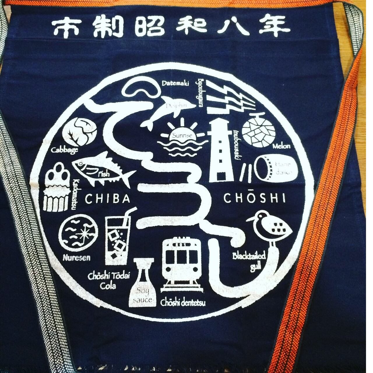 我が街、てうし(銚子)の誇れるモノやトコをアイコンにし帆前掛けを手刷りしました。