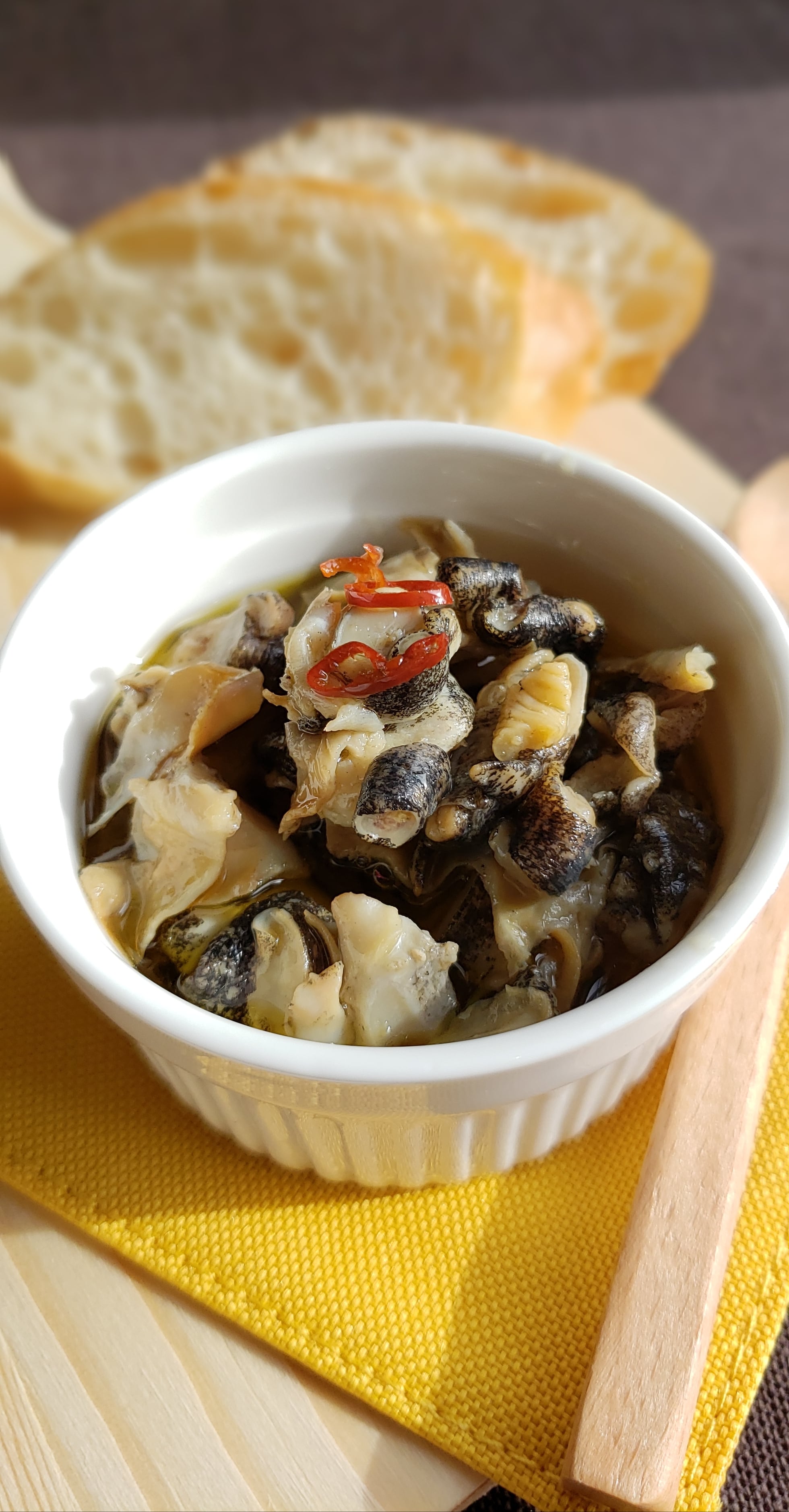 つぶ貝の繊細な食感と贅沢な旨みを引き立てるため、オリーブオイルと香ばしいガーリックが絶妙に香る自家製の調味液で仕上げました。温めるだけで、手軽に美味しいアヒージョを楽しむことができます。ワインやビールと一緒に、至福の時間をお過ごしください!
